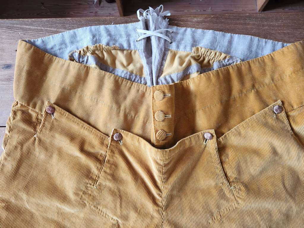 Assisted construction on 1770s corduroy breeches under Mark Hutter for a private customer in the tailor shop at Colonial Williamsburg.
