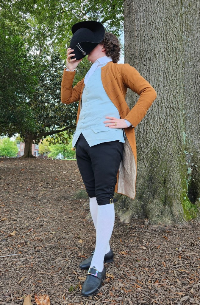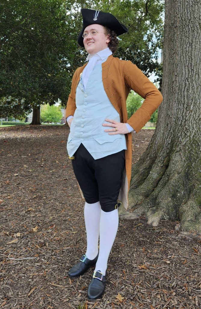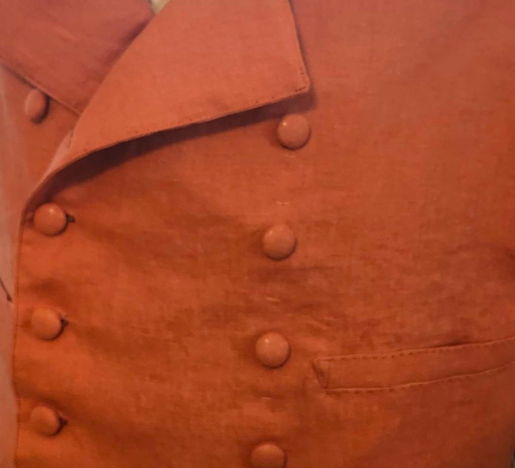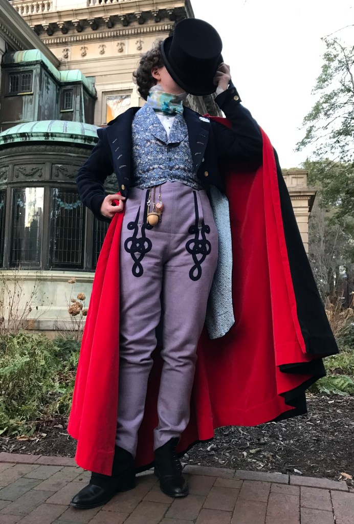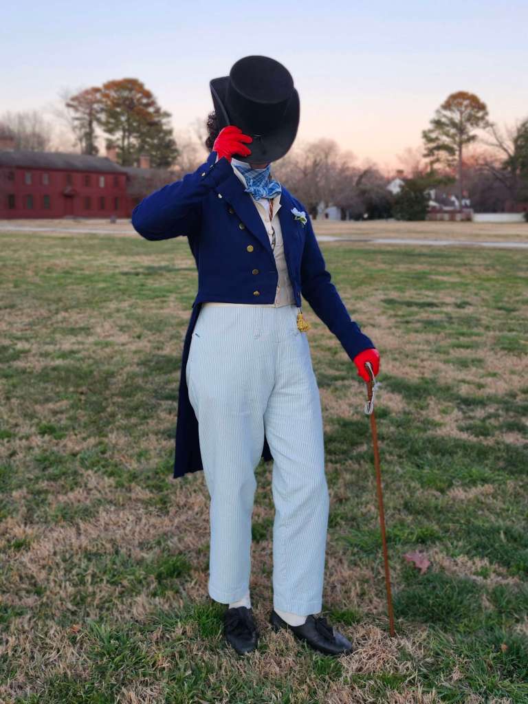 Period clothing made using a combination of historical and modern techniques.
