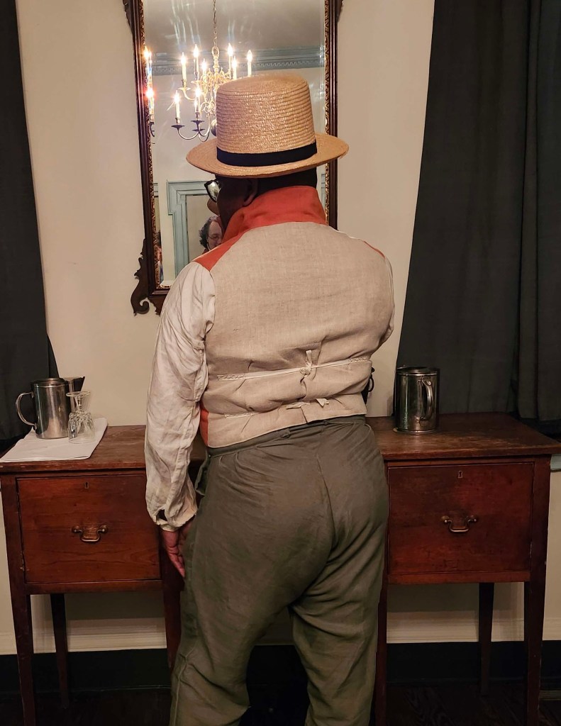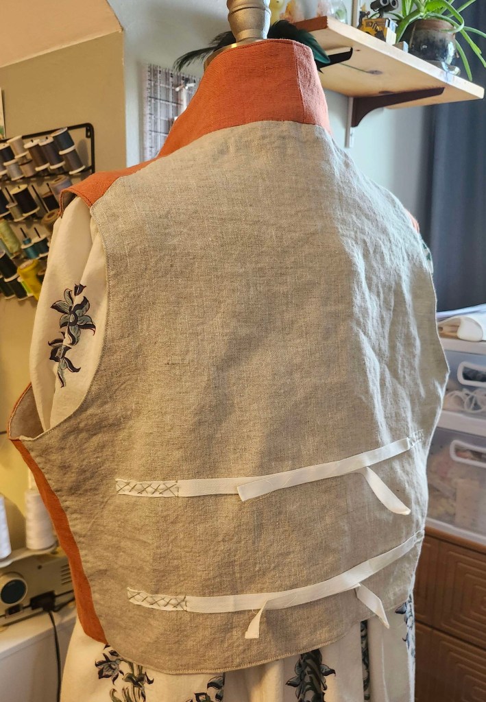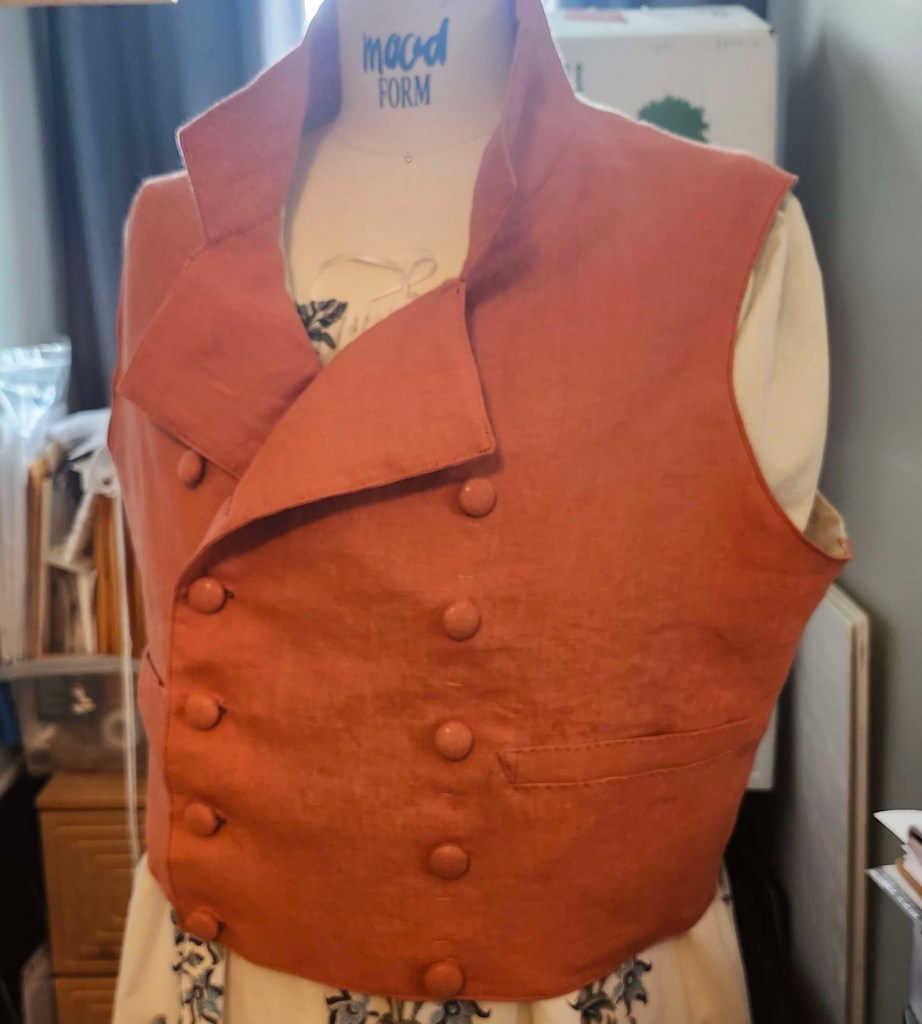 Commission of a regency linen waistcoat. Drafted from original 1820s drafting manual by myself. Made in 34 hours.