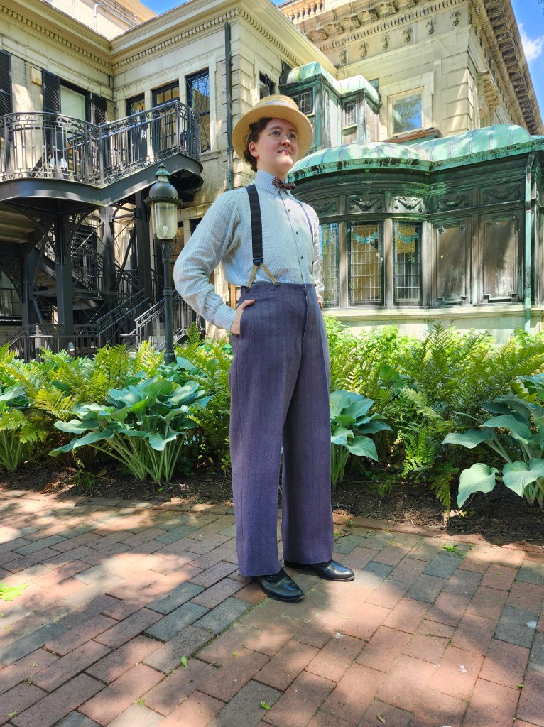 Historically accurate 1890s trousers drafted from original books with a shirt patterned from an extant example.